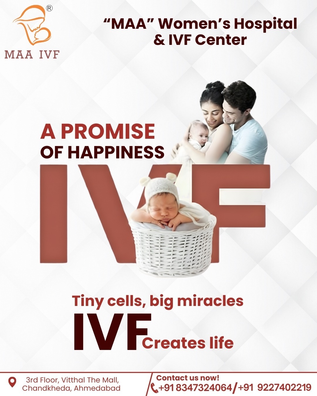 #MAAIVF #IVFCreatesLife #PromiseOfHappiness #FertilityCare #IVFTreatment #ParenthoodJourney #InfertilitySupport #WomenCare #AhmedabadIVF #TinyCellsBigMiracles #HopeAndHappiness